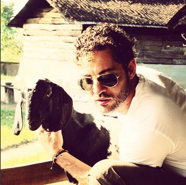 Miguel Bosé con nuevo compañero de rodaje.