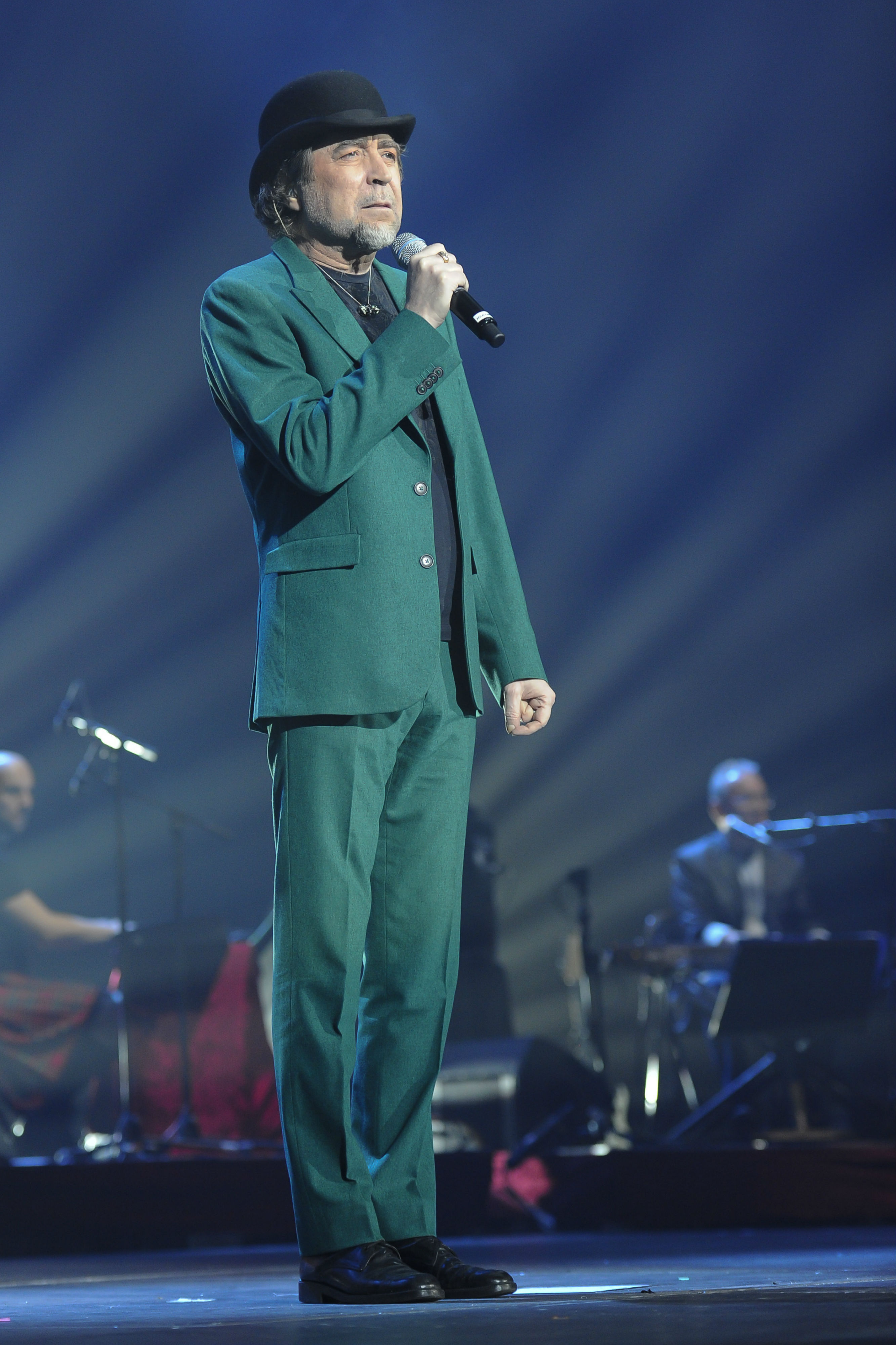 Sin embargo, todos estos malos augurios quedaban en eso, augurios. El tren volvió a Atocha, y con él Joaquín Sabina. Con bombín negro, traje verde, su mejor voz agrietada, más emocionado que nunca y con unas ganas terribles de comerse el escenario, de dejarse la piel durante los 90 minutos del partido y despejar todas las habladurías sobre su ‘Pastora Soler’.