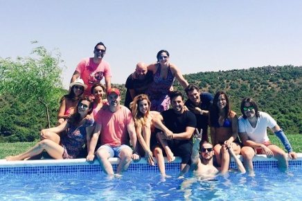 En la imagen se puede ver en una piscina a Rosa, Bustamante, Chenoa, Manu Tenorio, Verónica, Alejandro Parreño, Naím Tomas, Geno, Juan Cumus, Alex, Natalia, Javián y Nuria Fergó aprovechando un día soleado en mitad del campo. Además, en otra fotografía se aprecia a los 13 concursantes que se han reunido estos días disfrutando de una paella.