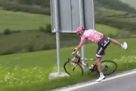 ¡Hay apretones muuuuy inoportunos! Y si no que se lo digan a Tom Dumoulin, quien ayer se vio obligado a bajarse de su bicicleta durante el Giro de Italia para hacer sus necesidades. Puedes escucharlo en el Zapping de Maspi, donde también escucharás cómo presumen de anillos Risto Mejide y Laura Escanes en el Instagram de la joven y conocerás ¡¡por fin!! el secreto para que un matrimonio dure.