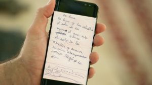 Una imagen que mostraba la letra de niño del artista y unas estrofas que decían: «La luna y las estrellas, el dolor de las manos, el mar está plano. El olor de las estrellas y tararón tararín esta poesía llegó a su fin«.