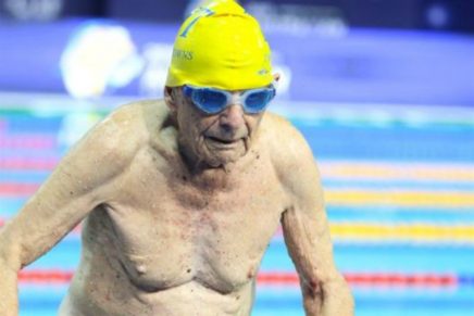 Se trata de un señor de 99 años que ha batido el tiempo récord del mundo de natación en su grupo de edad, recorriendo una piscina en tan solo 56,6 segundos. Aunque la edad iba de 100 a 104 años, le han dejado participar ya que cumple 100 en abril.