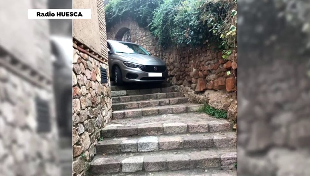 ¿Alguna vez has tenido un problema a la hora de utilizar el GPS? Esto le ha ocurrido a unas turistas que estaban haciendo uso del coche por Huesca. Han acabado atascadas en unas escaleras cuesta abajo.