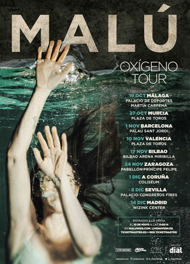 La venta general de entradas de ‘Oxígeno Tour’ comenzará el jueves 10 de mayo a las 11:00 h a través de www.maluweb.com, Livenation.es, Ticketmaster.es y Red Tickemaster (Halcón Viajes, Viajes Carrefour y FNAC). Los fans de Malú tienen que estar muy atentos, porque la artista tiene reservada una sorpresa para celebrar este inicio de la venta de tickets.