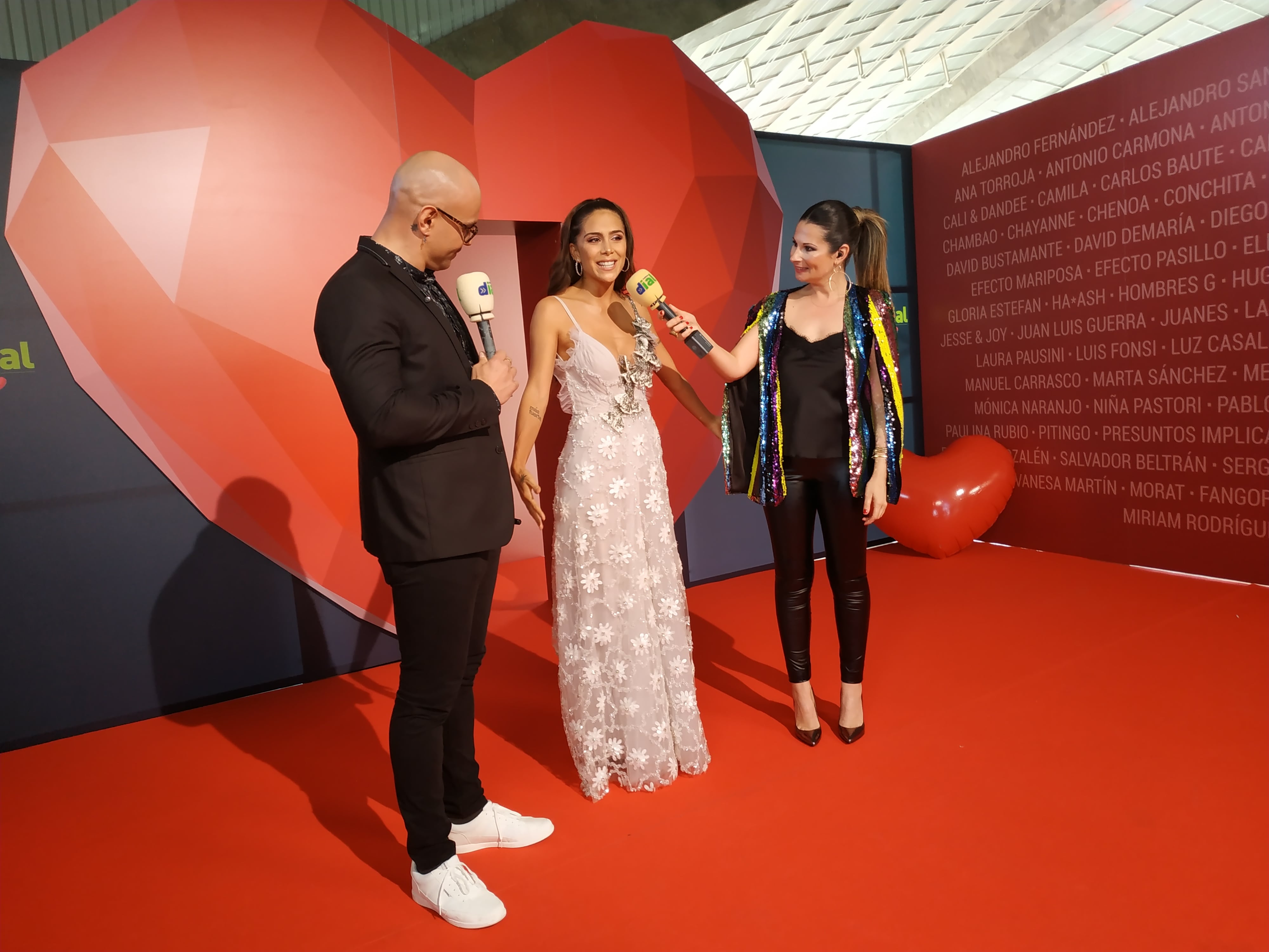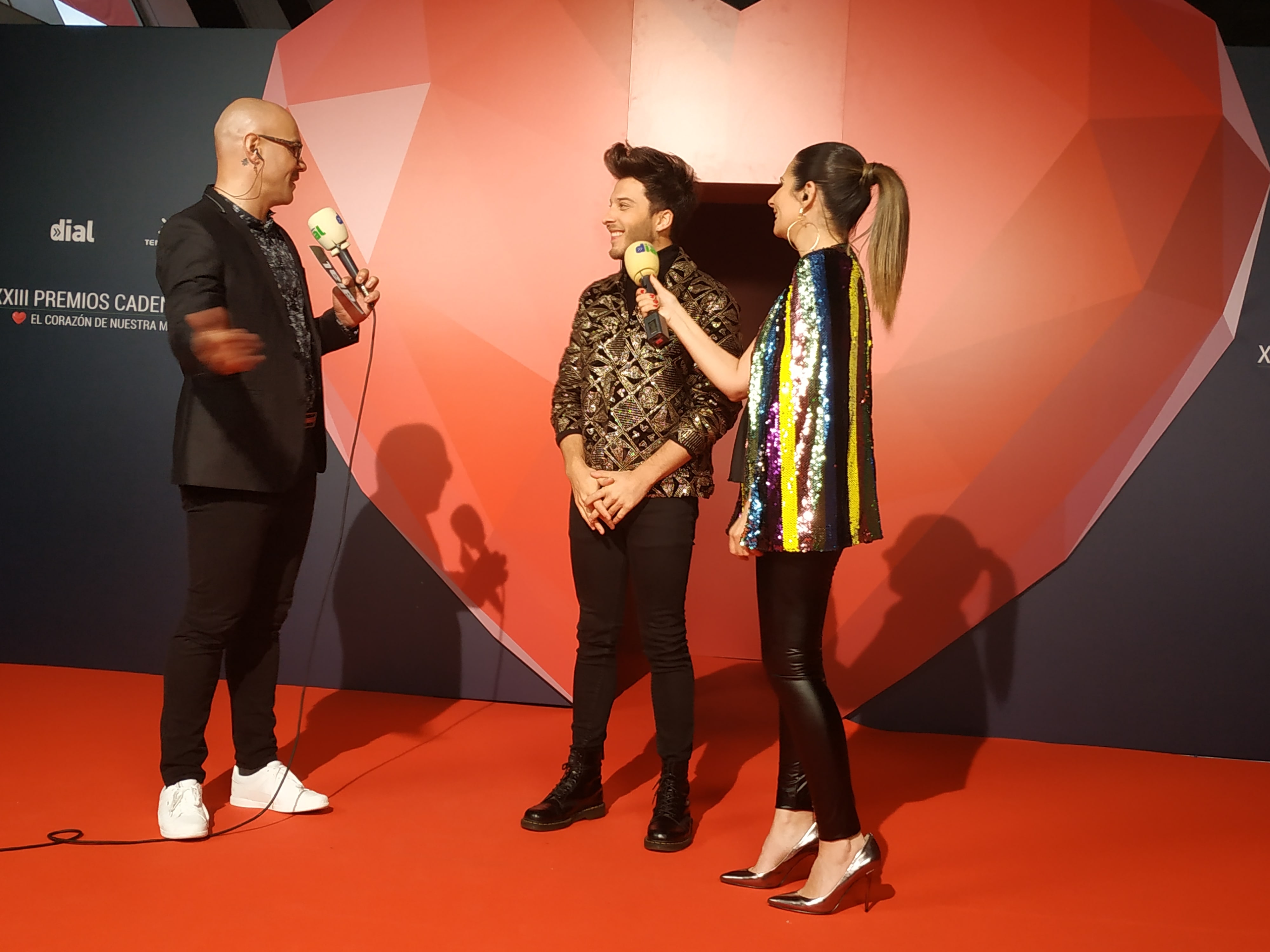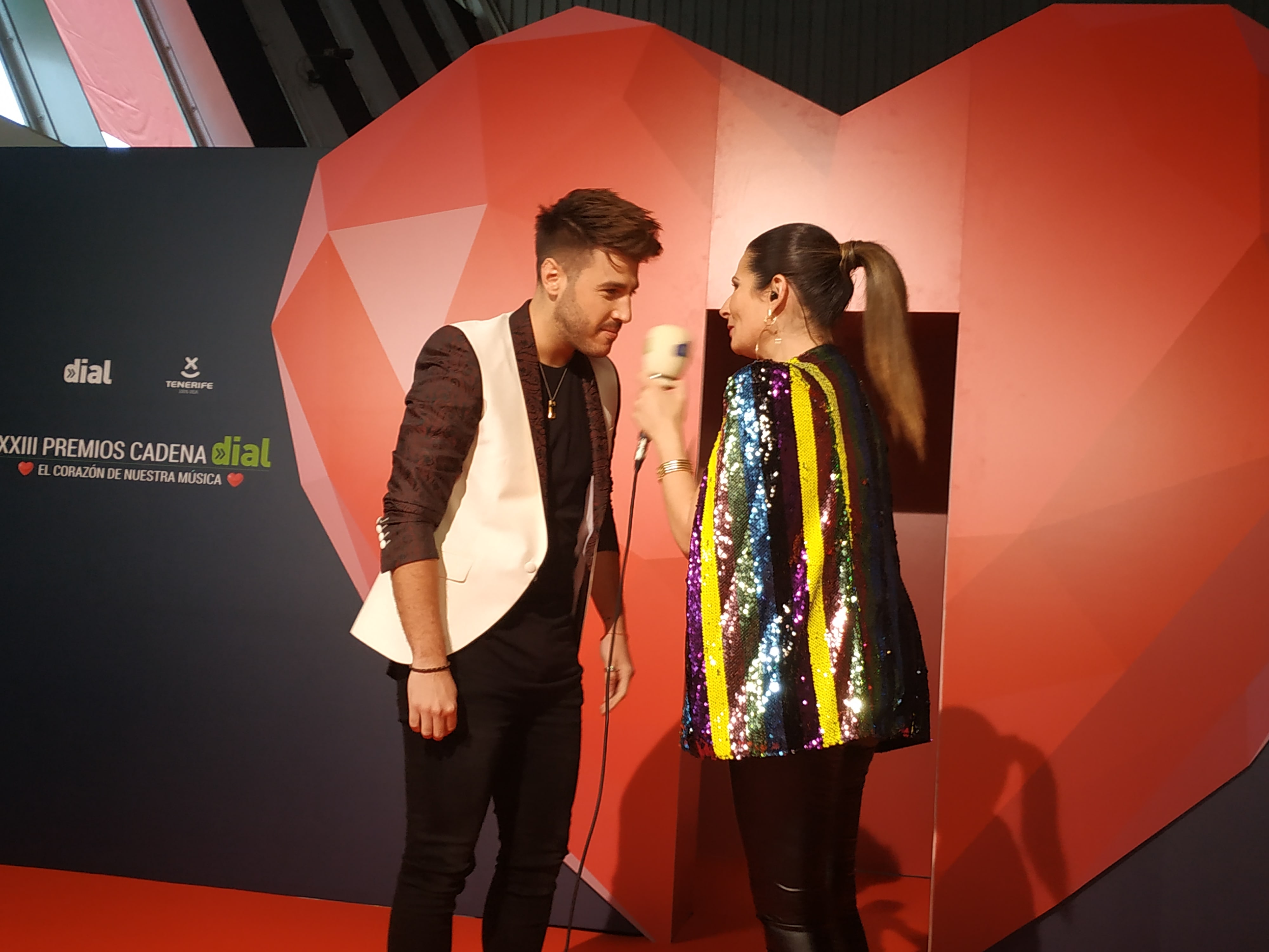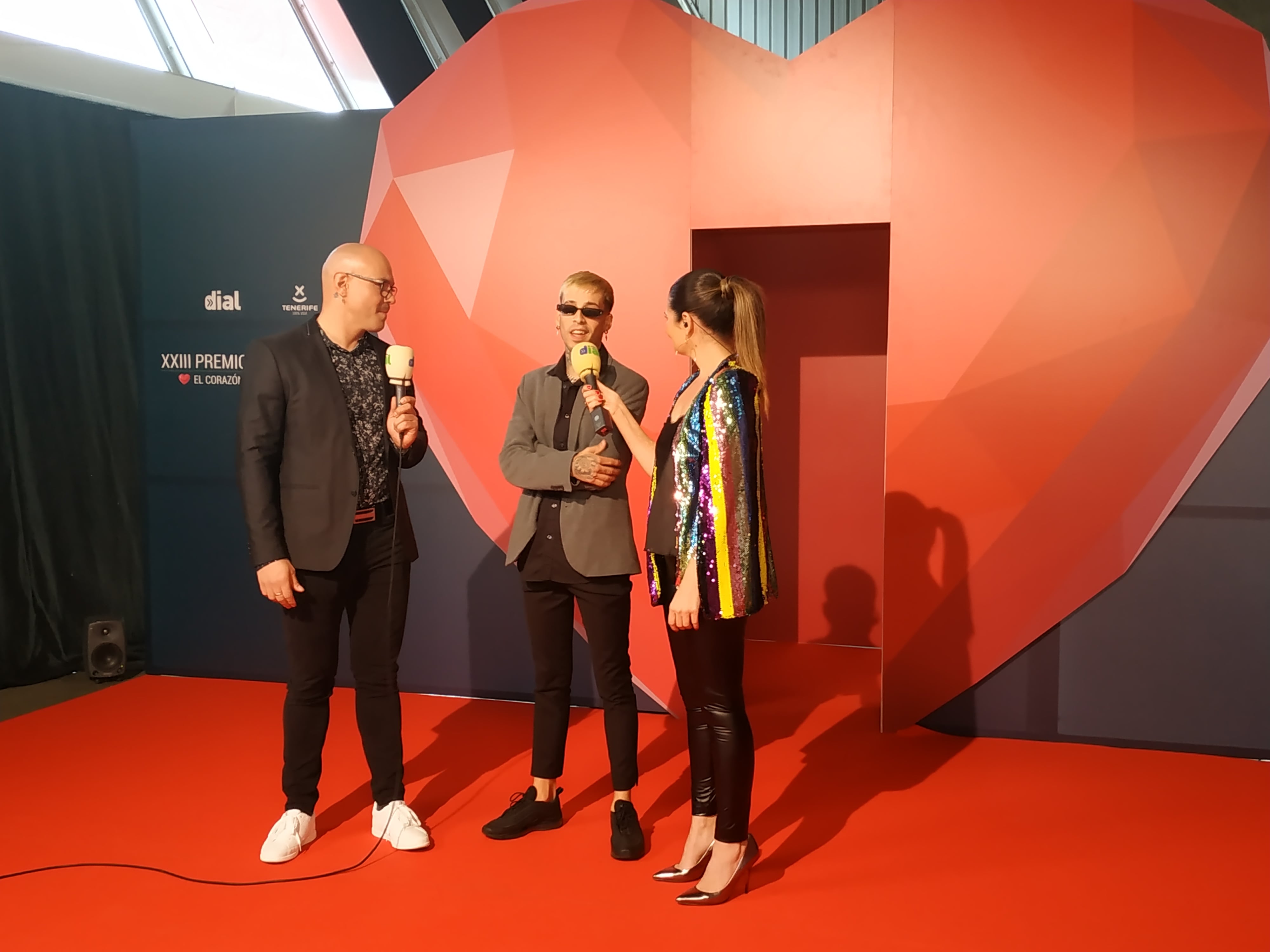 Desde las 18:30 horas (una hora menos en Canarias) desfilaron por nuestra alfombra verde, artistas premiados, artistas invitados y entregadores, y todos ellos, cruzaron la puerta del gran corazón que Cadena Dial había instalado en el Recinto Ferial de Tenerife.