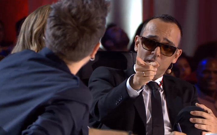 Lo curioso del momento fue que el único miembro del jurado que lleva gafas de sol en el programa fuera el que expresara al aspirante sobre el escenario que debía mantener los ojos abiertos para expresar con la mirada.