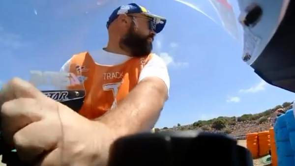 Lo han pillado gracias a la cámara de la moto, que estaba grabando en ese momento. El piloto se lo ha tomado de buenas maneras por suerte.