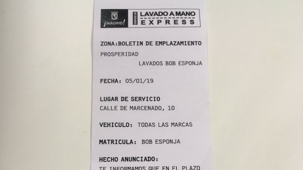 La cuestión es que se trataba de una publicidad de una empresa de lavado de coches pero que parecía exactamente una multa de tráfico del Ayuntamiento de Madrid. Lo más gracioso de esto es el nombre de dicha empresa, Bob Esponja.