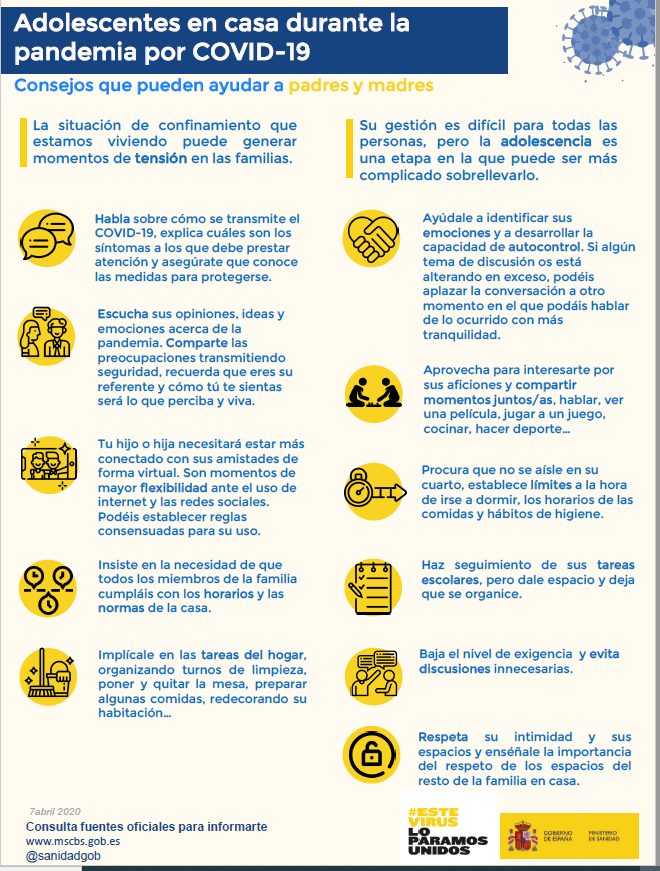 Estos son algunos consejos que pueden ayudarte, papá y mamá, y que han sido elaborados con ayuda de expertos en la materia por el Ministerio de Sanidad en esta presentación.