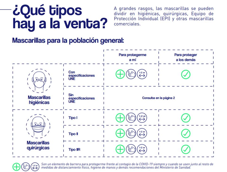 Dentro de las mascarillas homologadas, hay varios tipos: