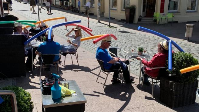 Y de la desinfección pasamos a la distancia de seguridad, una norma pasada por alto por muchas personas que ya van normalizando su vida. Suerte que tenemos ideas tan creativas como este bar de Alemania que ha colocado «churros» de natación en la cabeza de cada cliente. ¿Qué te parece?