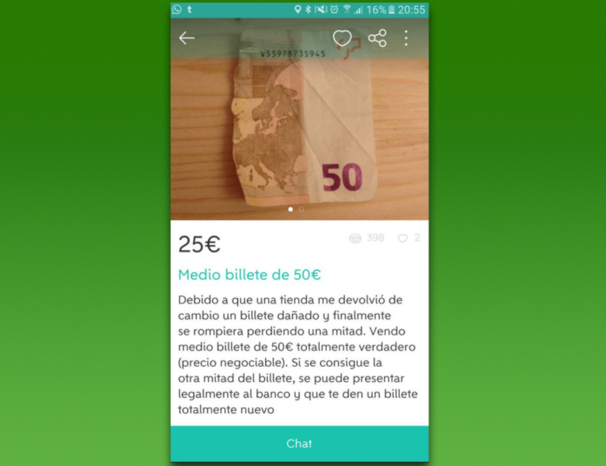 Y en el tercer caso, este medio billete de 50 euros te puede ayudar a encontrar a tu media naranja. Eso sí, prepara 25 euros y mucho tiempo para saber dónde está la otra mitad del billete y poder presentarlo en el banco para que te den uno nuevo.