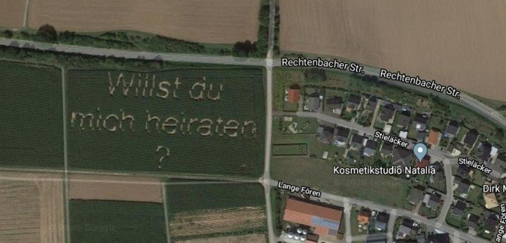 Sin embargo, la sorpresa se la llevó él días después tras darse cuenta de que todo el mundo hablaba de él. Y es que su mensaje «¿Quieres casarte conmigo?» era de tales dimensiones que podía verse por Google Earth.