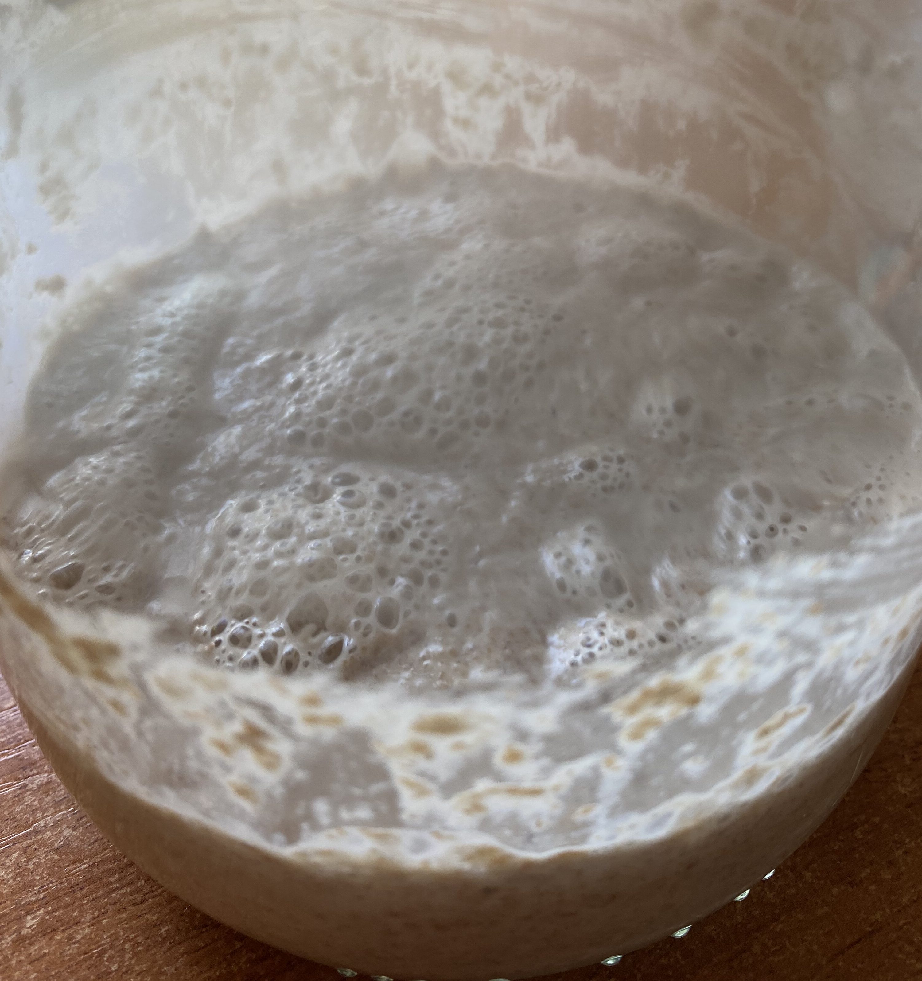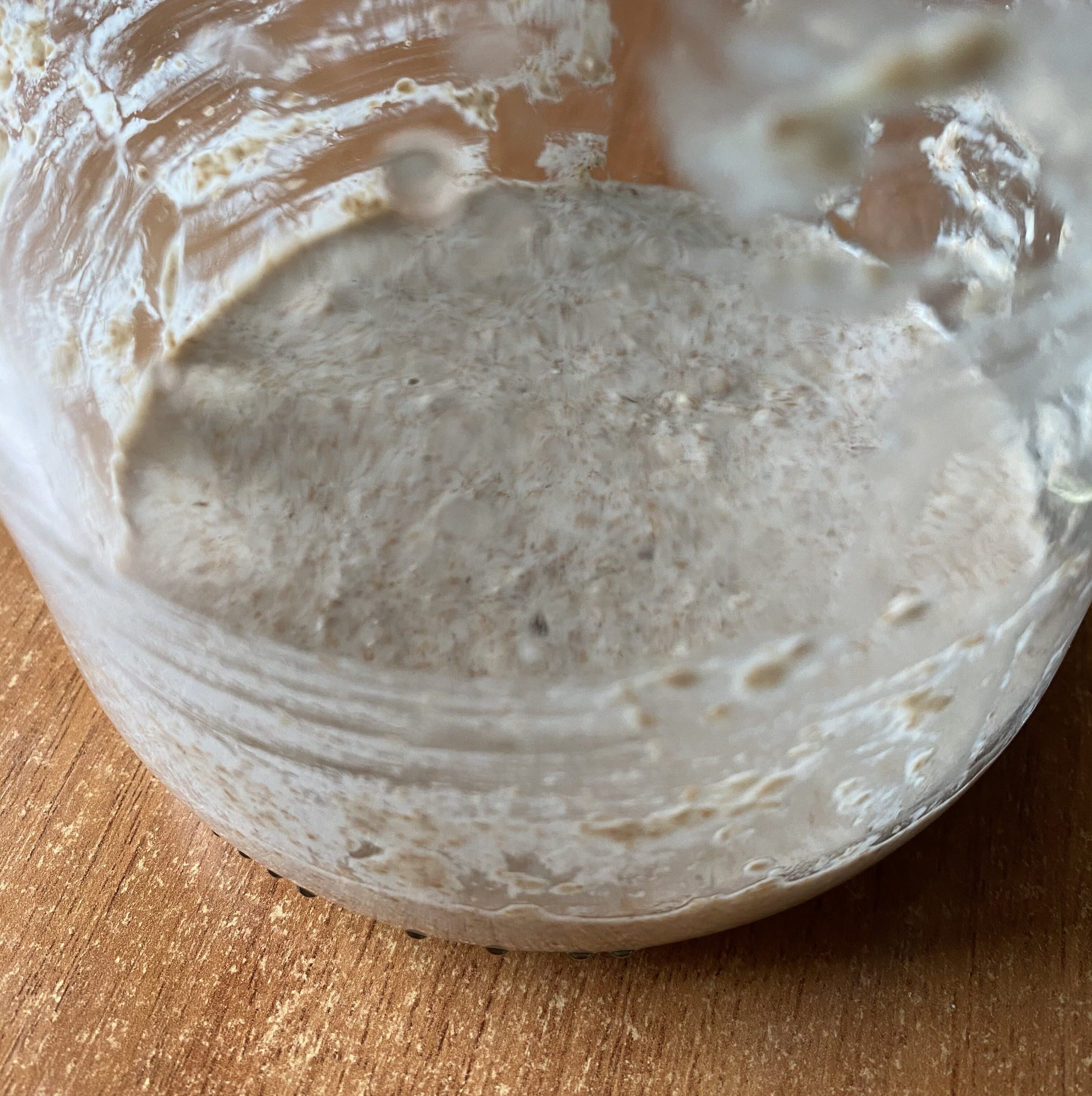 ¿Por qué repetimos el proceso cada día? Añadiendo diariamente estos ingredientes lo que hacemos es alimentar la masa madre. Esta se encargará de fermentar sola y, pasados dos días, comenzarás a observar que en la superficie empiezan a aparecer ciertas burbujas. Esto es señal de que todo está saliendo bien. La masa está fermentando.