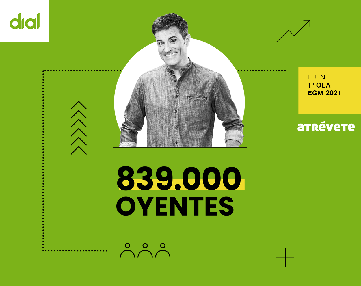 Cadena Dial continúa líder de la música en español con 1.474.000 oyentes oyentes y Atrévete, su despertador, 839.000 oyentes.