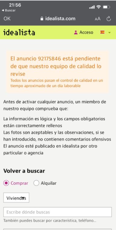 Ante la avalancha de comentarios y críticas, finalmente, el portal de viviendas borró el anuncio y ahora se encuentra pendiente de revisión.