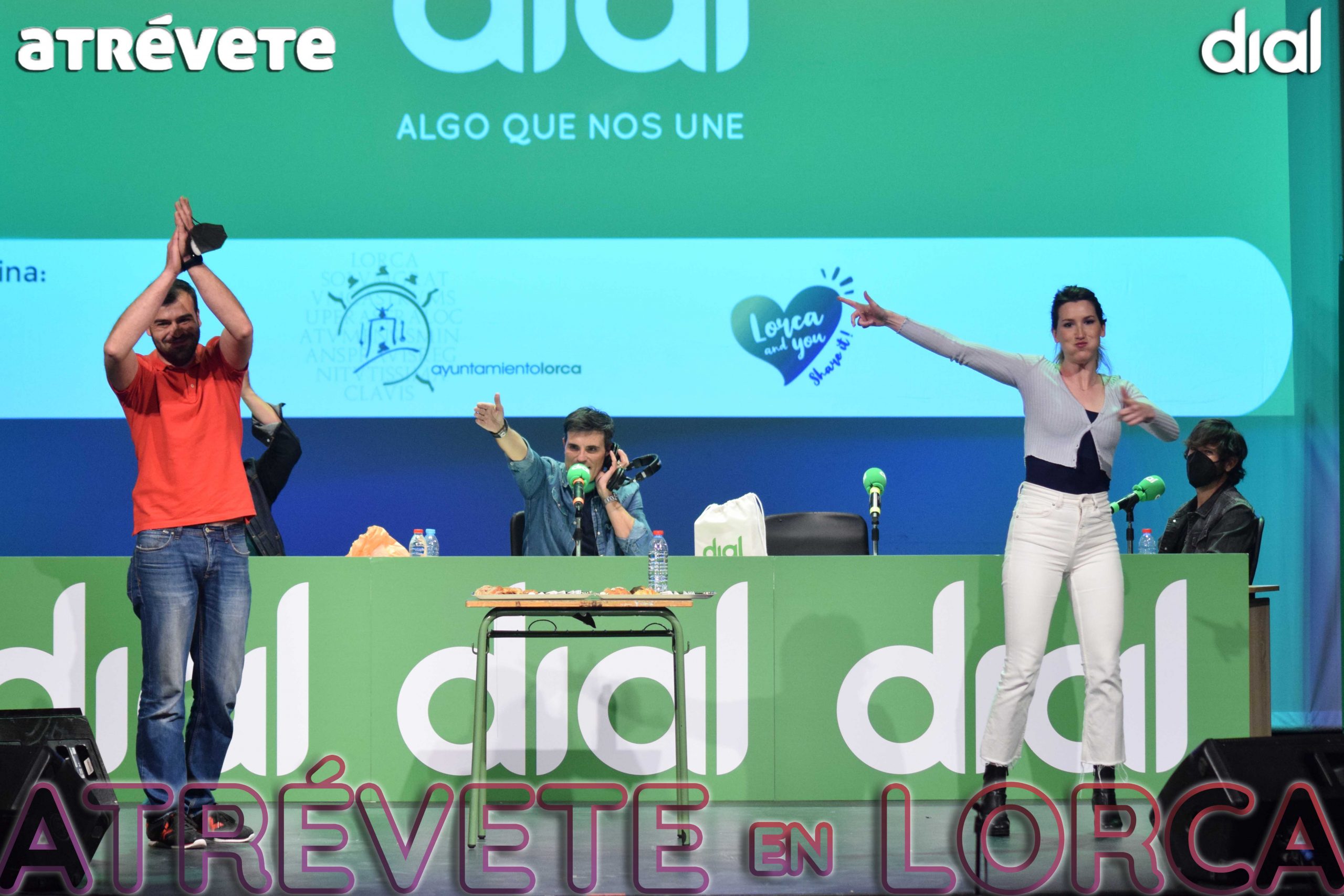 Porque sí, nuestra compañera fue capaz de anunciar cómo debemos ir al baño pidiendo al propio alcalde de Lorca, Diego José Mateos Molina, que subiera al escenario para representarlo de forma explícita.