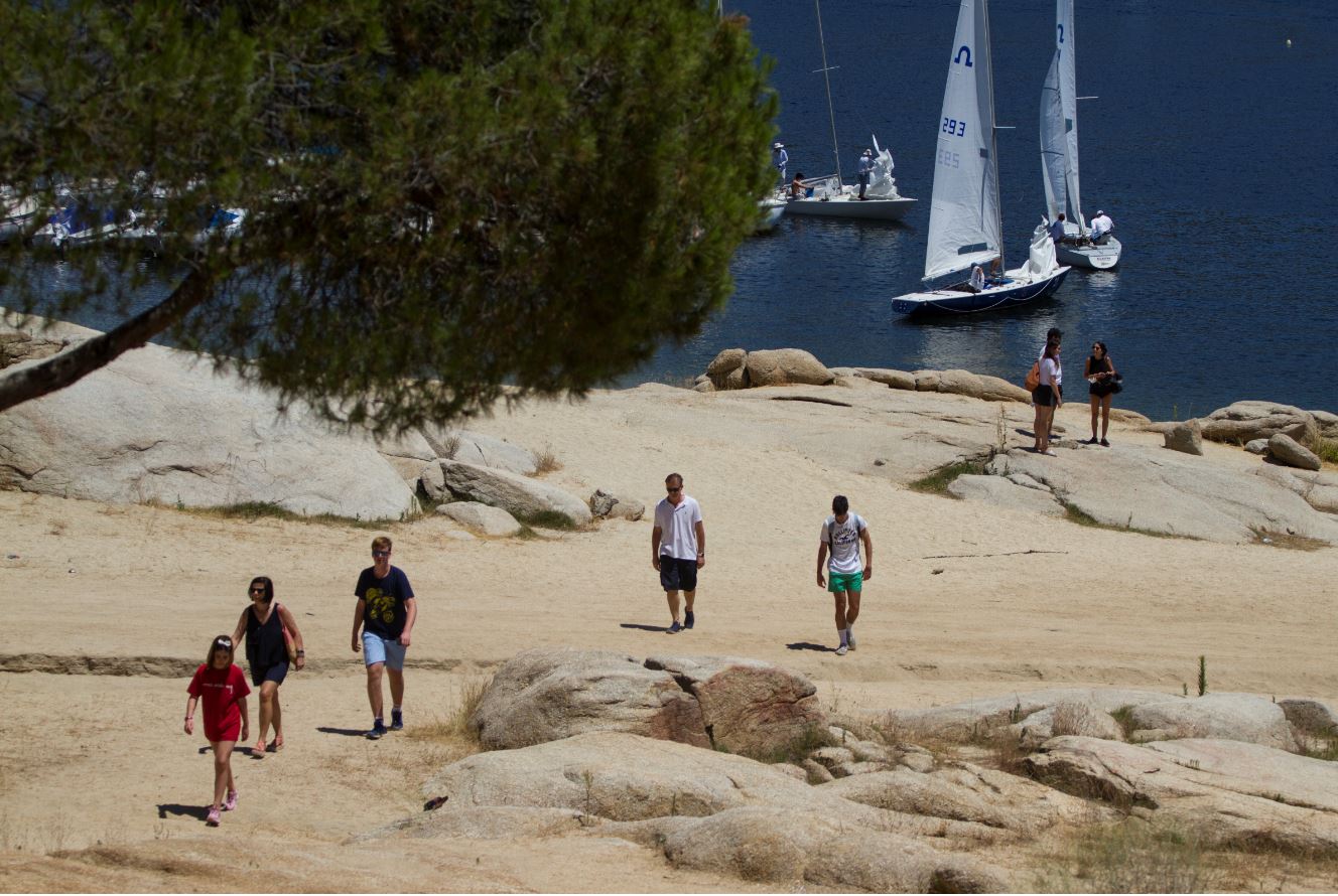 A orillas del lago de los Ángeles de San Rafael se ha creado una playa artificial donde, además de relajaros al sol, se pueden desarrollar multitud de actividades acuáticas: motos de agua, dar un bonito paseo en barca o, incluso, aprender a construir una balsa