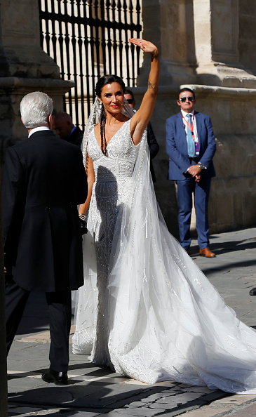 Esta publicación nos ha trasladado a hace dos años en la Catedral de Sevilla donde el futbolista y la colaboradora de El Hormiguero se dieron el sí quiero. Sin duda alguna el vestido es espectacular. Un diseño único, con piedras y abalorios decorándolo, el escote en V e inspirado en el movimiento Art Decó.