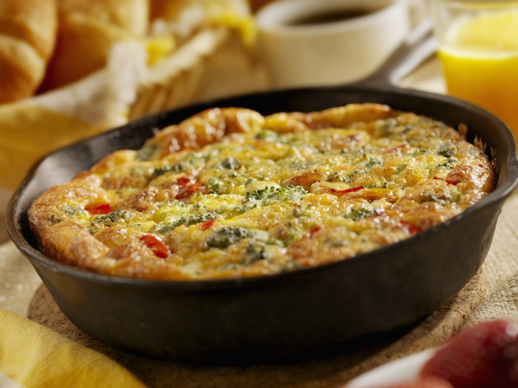La base es de brócoli y jamón cocido, bañado todo ello en huevo batido. Es muy nutritivo y saludable por la cantidad de proteínas que tiene.