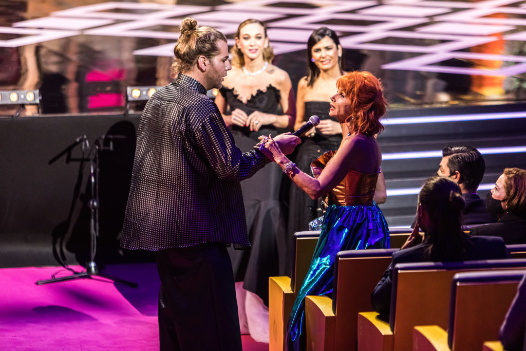 Victoria Abril es un icono del cine de los 80 y nadie mejor que ella para lucir un conjunto con tanto significado. Además, fue la encargada de entregar a Blanca Portillo su premio a Mejor Interpretación Femenina por su papel protagónico en Maixabel.