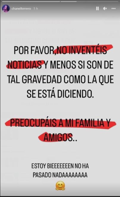 La propia Chanel quiso tranquilizar a sus seguidores con este mensaje en su Instagram: