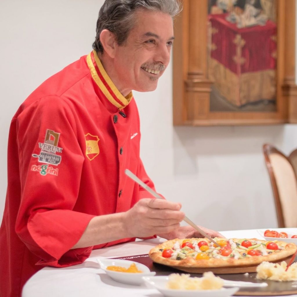 Es de Tomelloso se llama Jesús Marquina .y es todo un especialista en masa de pizza, se fue a Italia, estudio en dos escuelas y lleva treinta años estudiando las harinas, la fermentación y los tiempos de cocción.