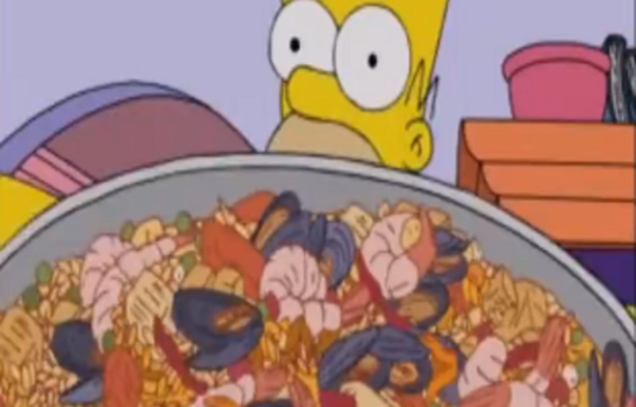 La paella de Homer es elemento principal en este Los Simpson. Pero… ¿qué le echa? ¡Chorizo! No sé si los guionistas están preparados para recibir amenazas de muerte de los valencianos, pero además destaca el arroz de Calasparra (Murcia), también en VO. pic.twitter.com/kOJ1VkWlUr
