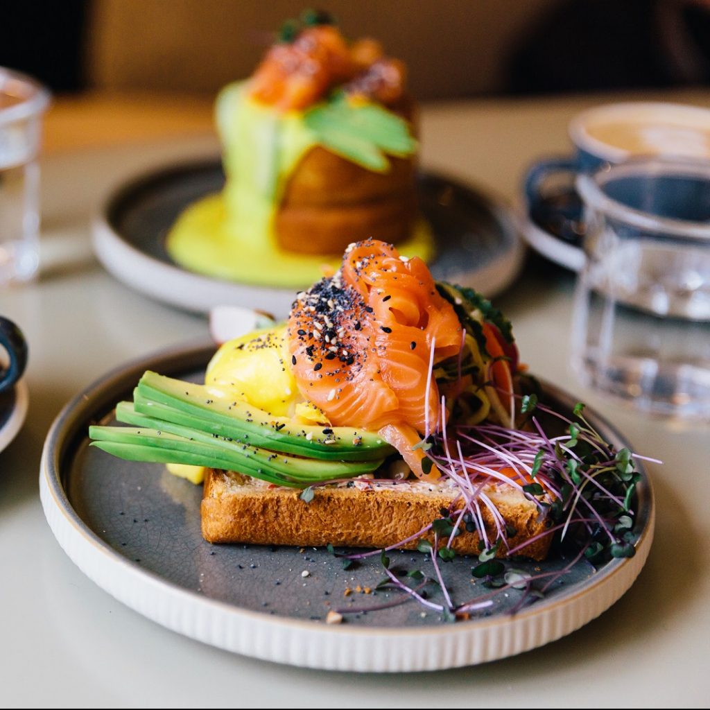 Para la primera necesitas un huevo y salmón ahumado. Haz el huevo revuelto y colócalo encima del pan, añade salmón ahumado y un poco de aceite.Una vez esté listo, coloca sobre el pan, añade por encima el salmón ahumado y un poco de aceite y a disfrutar.
