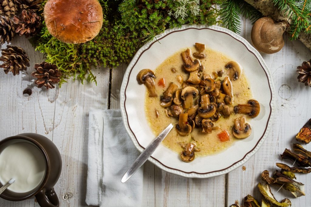 Desde 20Minutos proponen como primer plato una crema de champiñón que por supuesto puedes dejar hecha el día anterior, para ello necesitas medio kilo de champiñones, un cuarto de leche, un litro de caldo de pollo, aceite de oliva, sal y perejil. Para elaborarla corta los champiñones en rodajas y rehoga con aceite y sal, calienta el caldo y ponlo junto con los champiñones y la leche en una batidora, bate la mezcla y cuando esta tenga la consistencia que deseas sírvela con un chorrito de aceite de oliva.