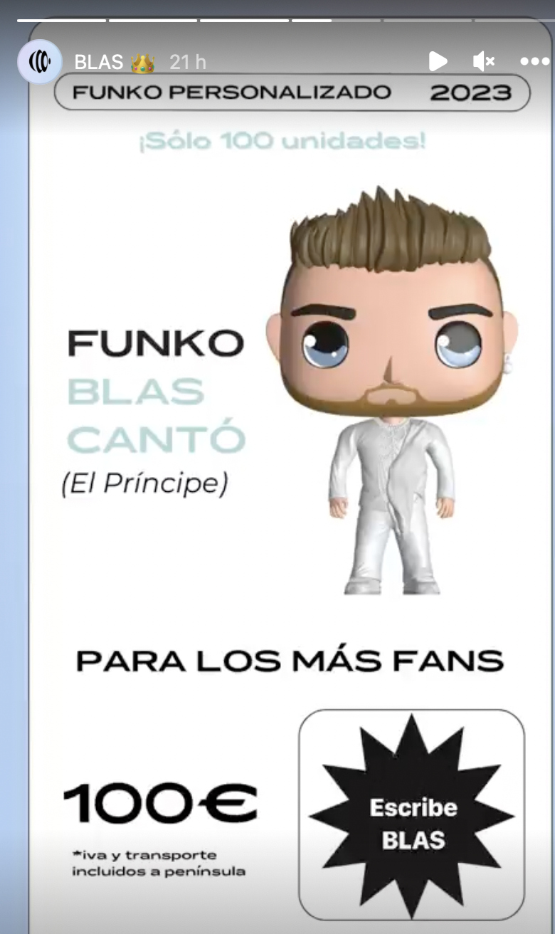 El malagueño acaba de resurgir de las cenizas del desamor en una nueva canción que incluye una colaboración inesperada. En este tema une su gran voz con el artista Yadam. Un himno al desamor titulado El perdedor. En medio de todo el caos que supone el lanzamiento de un tema, Blas ha sorprendido en redes de su nueva adquisición. «Así empezó #ElPríncipe y esto es lo que me ha llegado estos días a casa. Gracias @tufigura_3d por haber hecho realidad este sueño», escribía entusiasmado en redes.  «Genteeeee! Soy una figurita 3D! Vosotros también podéis conseguir la vuestra«, anunciaba a sus seguidores.