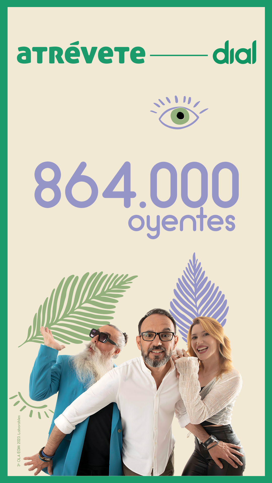 Cadena Dial se mantiene líder de la radio musical en español y es tercera radio musical más escuchada de España con un total de 1.474.000 oyentes diarios. Los atrevidos siguen siendo una piña. Y es que cada día 864.000 oyentes se levantan con Jaime Moreno y todo su equipo de Atrévete.
