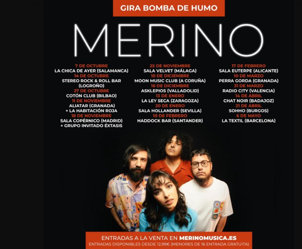 Las buenas noticias se acumulan para Merino en este inicio de 2023: mientras continúan con su gira ‘Bomba de humo’ por todo el país, anuncian el nuevo videoclip de su single ‘Me voy’ y además, su nueva incorporación al roster de Hook Management, junto a artistas de la talla de: Izal, Miss Caffeina, Elefantes o Varry Brava, entre otros.