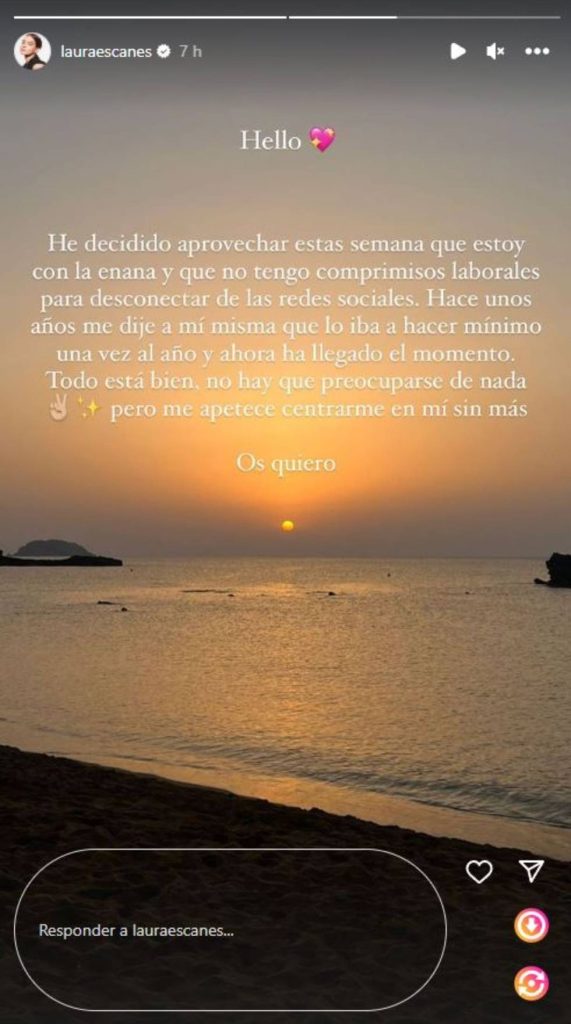 «He decidido aprovechar estas semanas que estoy con la enana y que no tengo compromisos laborales para desconectar de las redes sociales». Así avanzaba Laura Escanes a sus seguidores en sus historias de Instagram que iba a estar un tiempo alejada de las redes.