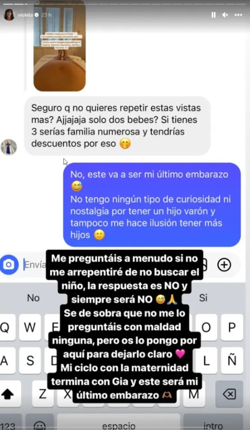 La influencer no ha podido ser más clara en su respuesta, «Este va a ser mi último embarazo; no tengo ningún tipo de curiosidad ni nostalgia por tener un hijo varón y tampoco me hace ilusión tener más hijos», ha dicho textualmente.