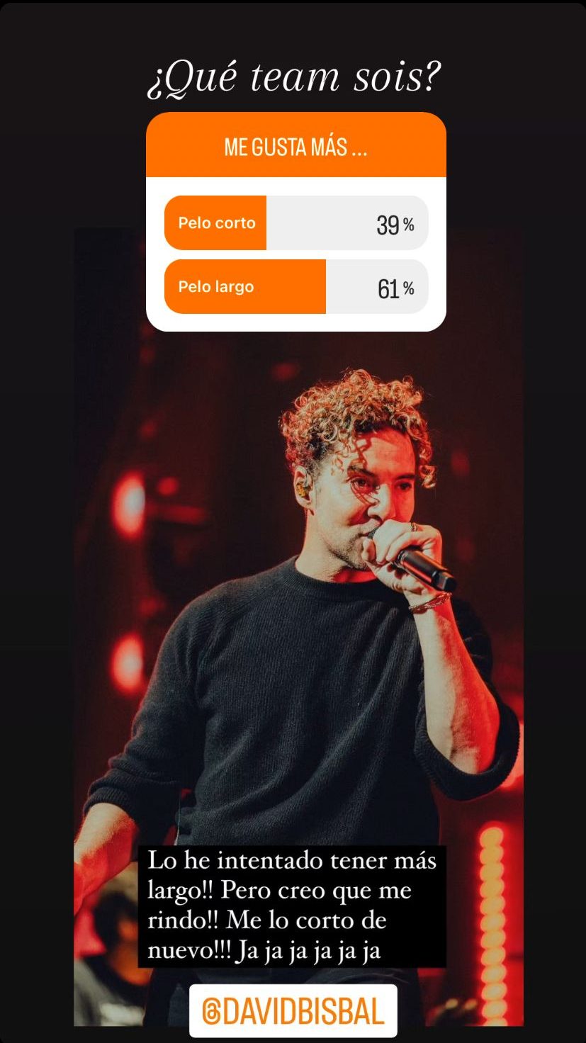Sus club de fans oficial no tardó en lanzar una encuesta para ver qué opinaban estos sobre el look de Bisbal. ¿Mejor con el pelo corto o con su melena de rizos? Estos parecen tenerlo claro, pues con un 61% de los votos gana ¡la melena!
