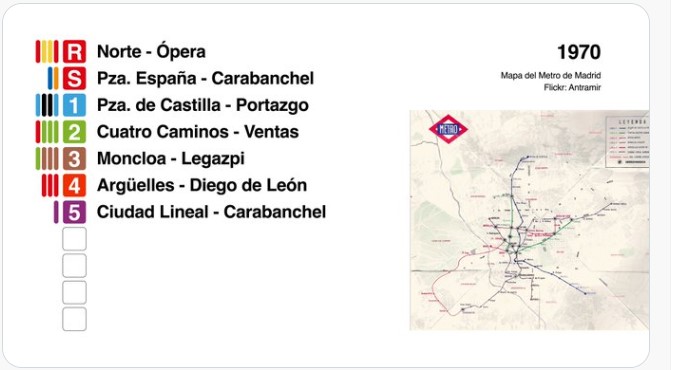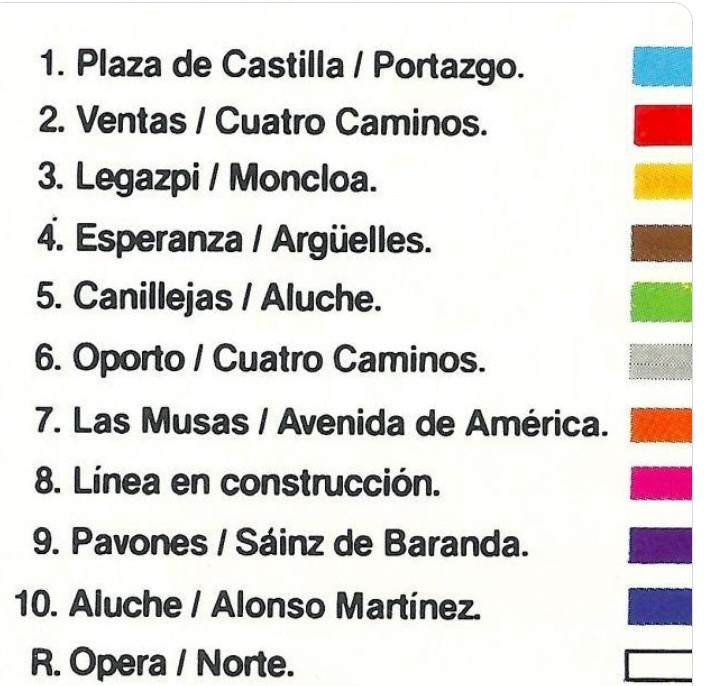 Así que en este hilo vamos a descubrir qué colores habían en el Metro durante toda su historia, y para eso vamos a recopilar muchos mapas extraños, documentos del Ministerio de Fomento, y tener muchas horas muertas fruto de una muy baja vida social.