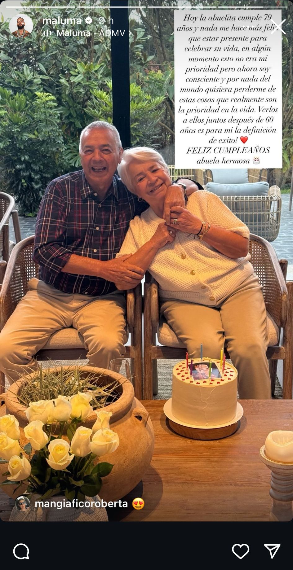 «Hoy la abuelita cumple 79 años y nada me hace más feliz que estar presente para celebrar su vida, en algún momento esto no era mi prioridad pero ahora soy consciente y por nada del mundo quisiera perderme estas cosas que realmente son la prioridad en la vida. Verlos a ellos juntos después de 60 años para mi es la definición de éxito!«, escribía en redes junto con una imagen de sus dos abuelos felices.