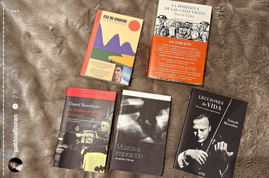 También ha recomendado varios libros el malagueño Pablo Alborán, quien ha aprovechado las historias de su cuenta de Instagram para destacar hasta 5 lecturas diferentes: ‘La Península de las casas vacías’, de David Uclés; ‘Lecciones de vida. El arte como esperanza’ de Yehudi Menuhin; ‘Música e inspiración’ de Jonathan Harvey; ‘Ese de anoche’ de Alejandro Simón Partal y ‘La música despierta el tiempo’ de Daniel Barenboim. Por todo ello, podemos comprobar que muchas de sus últimas lecturas están vinculadas con la industria discográfica y podrían estar sirviéndole de inspiración.