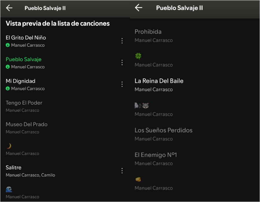 Si indagamos en la página web oficial del artista podemos comprobar que el repertorio del disco está conformado por 10 canciones con títulos como ‘Tengo el Poder’, ‘Museo del Prado’ o ‘Prohibida’, mientras que si accedemos a su perfil oficial de Spotify podemos comprobar que este proyecto incluye otras sorpresas que consiguen que el disco llegue hasta los 15 audios.